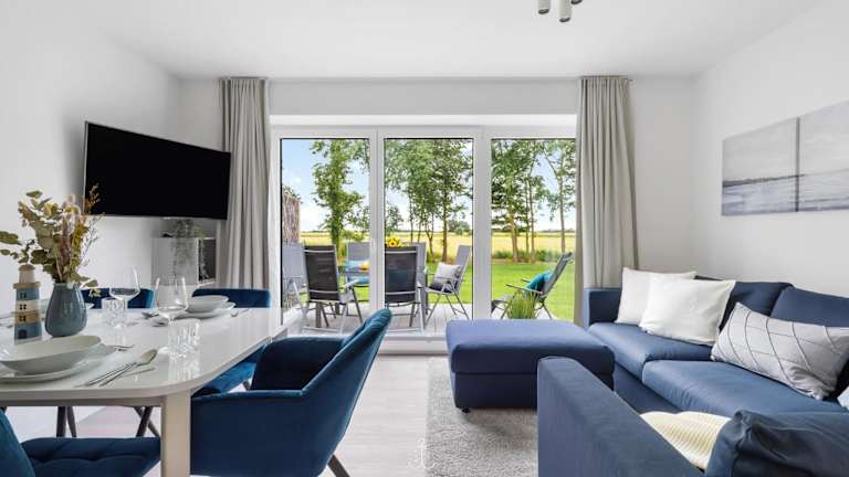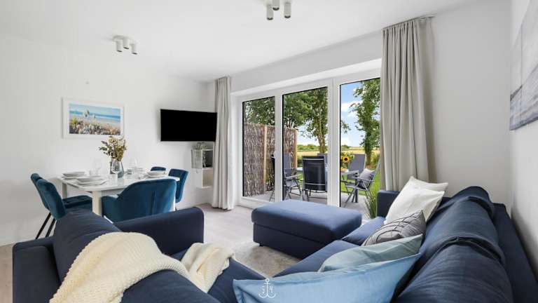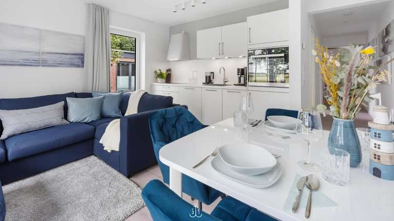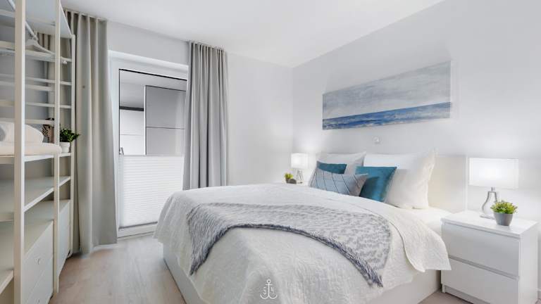 Die Ferienwohnung beinhaltet zwei Schlafzimmer, ein Wohnzimmer, ein Badezimmer mit Dusche sowie eine gut ausgestattete Küche mit Kühlschrank und Geschirrspüler. WLAN ist in allen Bereichen verfügbar.