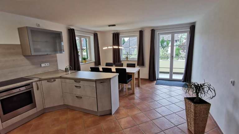 In der Ferienwohnung sind die Wohneinheiten mit einer Küche ausgestattet, die über Kühlschrank, Geschirrspüler, Ofen und Kaffeemaschine verfügt.