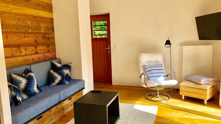 Die Ferienwohnung hat ein Schlafzimmer und ein Wohnzimmer. Zur Ausstattung gehören ein Flachbild-TV, eine gut ausgestattete Küche mit Kühlschrank und Geschirrspüler sowie ein Badezimmer mit Dusche. Handtücher und Bettwäsche sind ebenfalls bereitgestellt.