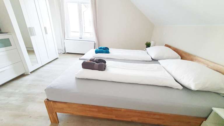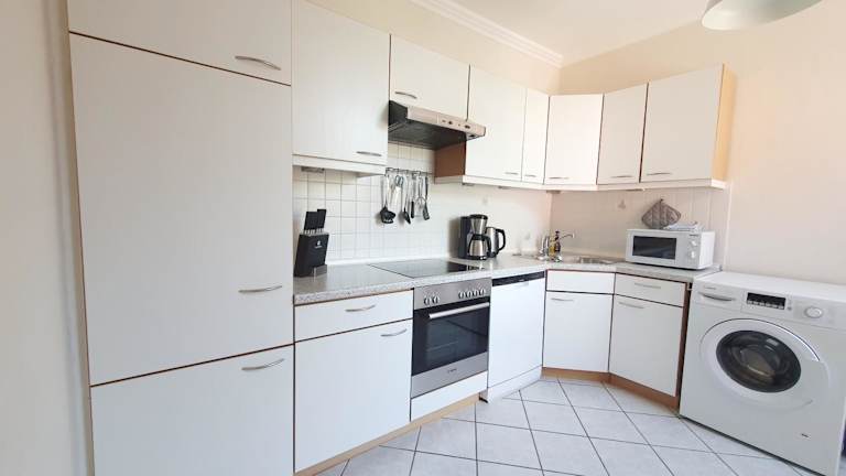 Die Ferienwohnung verfügt über zwei Schlafzimmer, ein Wohnzimmer, einen Flachbild-TV und eine gut ausgestattete Küche, die mit einem Kühlschrank und einem Geschirrspüler ausgestattet ist. Es gibt ein Badezimmer mit Dusche. Handtücher und Bettwäsche werden bereitgestellt.