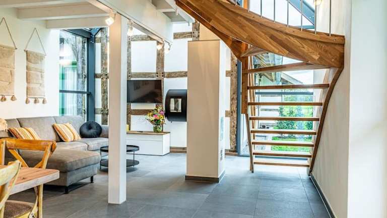Die Ferienwohnung "Stellmacherei" befindet sich in Versmold, umgeben von Möglichkeiten zum Wandern und Fahrradfahren. Der Ferienwohnung sind diverse Sehenswürdigkeiten in der Umgebung zugeordnet, darunter das Bauernhaus-Museum und das Museum am Schölerberg, die beide etwa 35 bis 36 km entfernt liegen. Der Hauptbahnhof Osnabrück ist 38 km entfernt, während der Flughafen Münster-Osnabrück in einer Entfernung von 43 km anzutreffen ist.