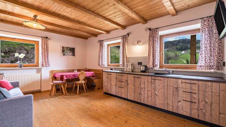 Die Ferienwohnung Stockrose Nusserhof verfügt über ein gemütliches Apartment mit einem Schlafzimmer, einem Wohnzimmer, einer voll ausgestatteten Küche und einem Badezimmer. Vom Balkon aus haben Sie einen herrlichen Blick auf die Berge. Handtücher und Bettwäsche werden gestellt, und WLAN ist kostenlos verfügbar.