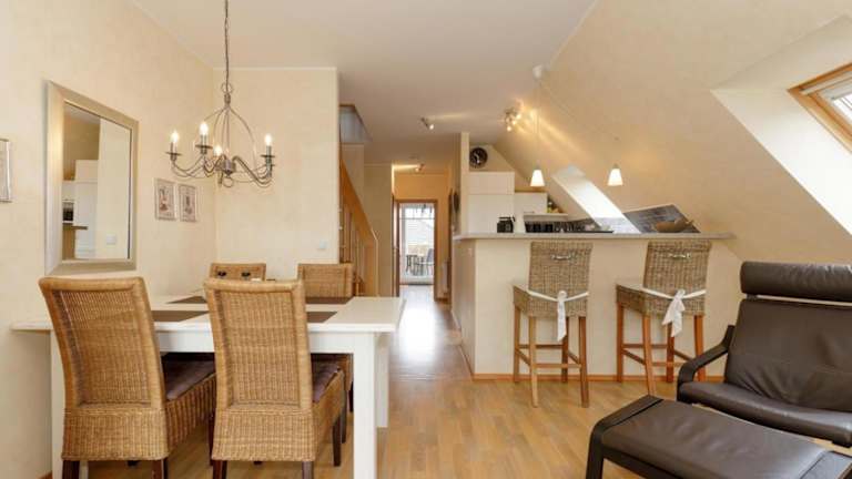Die Ferienwohnung verfügt über zwei Schlafzimmer und ist mit einem TV sowie einer voll ausgestatteten Küche ausgestattet. Diese Küche beinhaltet einen Kühlschrank, Geschirrspüler, Waschmaschine, Ofen und Mikrowelle. Handtücher und Bettwäsche werden zur Verfügung gestellt.