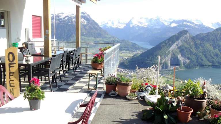 Verbringen Sie einen unvergesslichen Aufenthalt in der Ferienwohnung Suter, die Ihnen geräumige Apartments inmitten der wunderschönen Berglandschaft von Seewen bietet. Genießen Sie den atemberaubenden Blick auf den Berg Rigi und den Vierwaldstättersee von Ihrem eigenen Balkon aus. Die Apartments sind mit hellen Holzmöbeln eingerichtet und verfügen über eine voll ausgestattete Küche und einen TV. Das Haus bietet zudem eine Skiaufbewahrung sowie einen Babysitterservice und die Möglichkeit, Lunchpakete zu bestellen. Erkunden Sie die Umgebung auf den markierten Rad- und Wanderwegen oder besuchen Sie das nahegelegene Skigebiet Sattel-Hochstuckli und den Lauerzersee. Der Bahnhof und Busbahnhof Schwyz sind nur 9 km entfernt und kostenfreie Parkplätze stehen Ihnen direkt an der Unterkunft zur Verfügung.