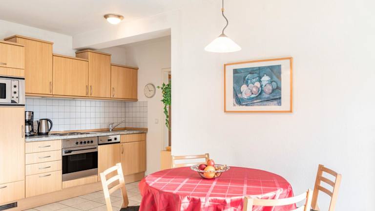 Die Ferienwohnung verfügt über 2 Schlafzimmer, 1 Badezimmer, Bettwäsche, Handtücher und einen TV mit Kabelkanälen. Die voll ausgestattete Küche bietet alles Notwendige zur Selbstverpflegung, und die Terrasse bietet einen Blick auf die Berge. Es gibt zudem einen Abstellraum für Skier.