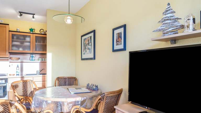Die Ferienwohnung umfasst 1 Schlafzimmer und 1 Badezimmer. Zur Ausstattung gehören Bettwäsche, Handtücher, ein TV mit Kabelkanälen, eine voll ausgestattete Küche sowie ein Balkon mit Gartenblick. Die Zimmer sind für Nichtraucher eingerichtet.