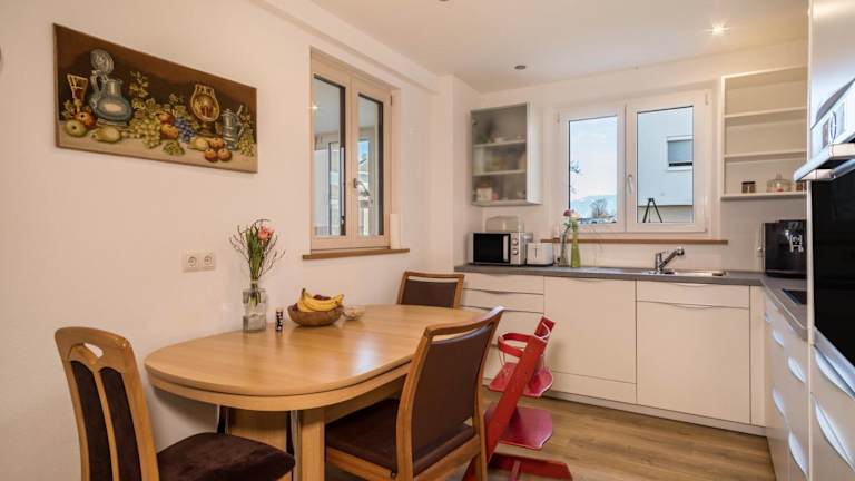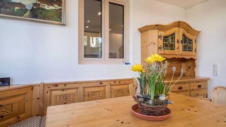 In der Ferienwohnung Tannenblick können Sie selbst kochen und die voll ausgestattete Küche nutzen. Alternativ können Sie auch die Grillmöglichkeiten im Garten nutzen.