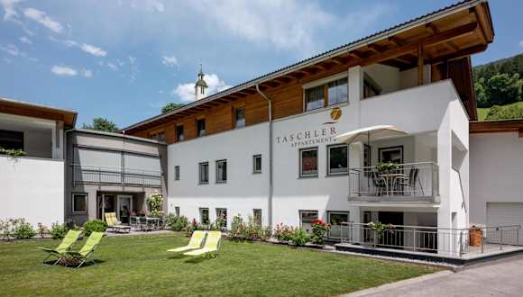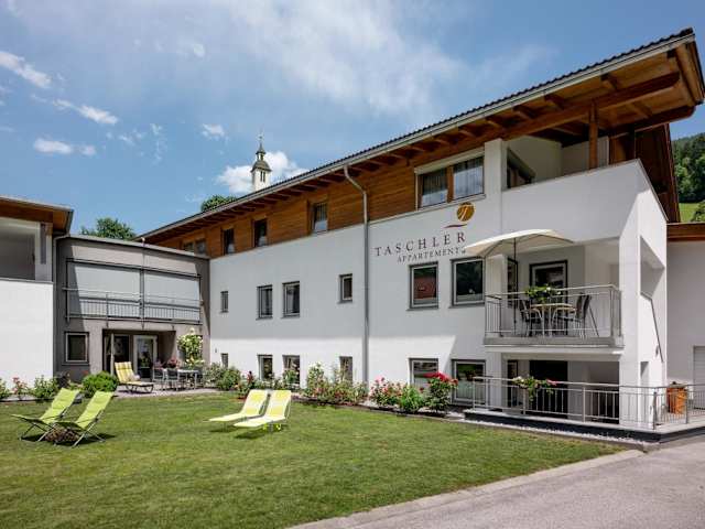 Die Ferienwohnung Taschler bietet ein modernes und geräumiges Apartment mit heller Holzmöblierung. Das Apartment verfügt über ein gemütliches Wohnzimmer mit einem komfortablen Sofa, eine gut ausgestattete Küchenzeile mit Geschirrspülmaschine und zwei Schlafzimmer. Jedes Schlafzimmer verfügt über ein eigenes Badezimmer mit Dusche und Haartrockner. Sat-TV und kostenfreies WLAN sind ebenfalls vorhanden. Von der Terrasse aus können Sie den herrlichen Bergblick genießen.