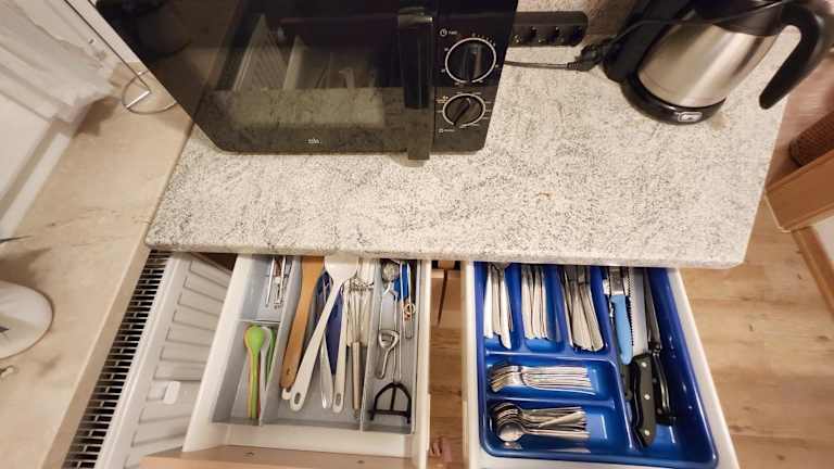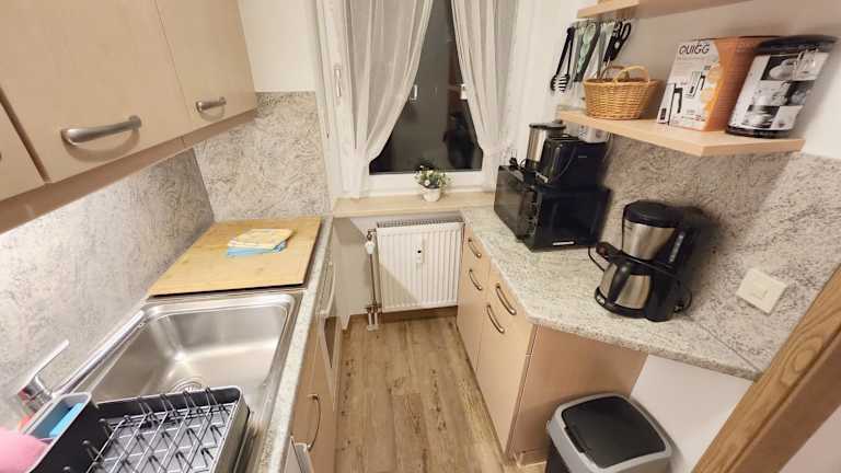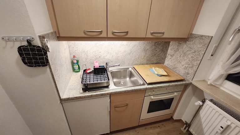 Die Ferienwohnung beinhaltet ein Schlafzimmer, eine Küche mit einem Ofen und einer Mikrowelle, einen Flachbild-TV, einen Sitzbereich sowie ein Badezimmer mit Badewanne. Handtücher und Bettwäsche werden bereitgestellt.