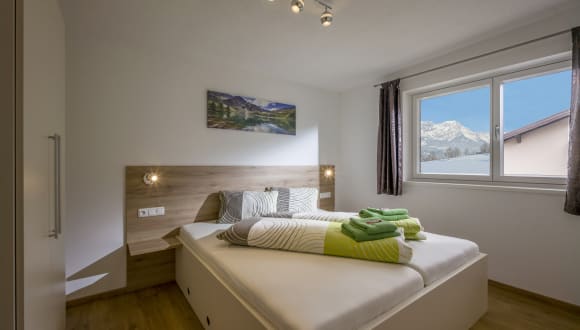 Es befindet sich im 1. Stock ein Zimmer mit Doppelbett. Im 2. Stock sind 1 Etagenbettzimmer, 2 Doppelbettzimmer wobei in einem eine Schlafcouch steht, dort können auch nochmals 2 Personen schlafen.