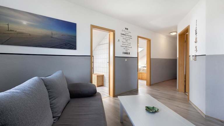 Die Ferienwohnung umfasst 1 Schlafzimmer, ein Wohnzimmer, ein Badezimmer mit Dusche und kostenlosen Pflegeprodukten sowie eine voll ausgestattete Küche. Handtücher und Bettwäsche werden gestellt.