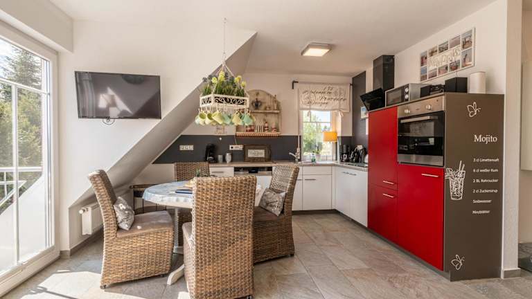Das Apartment im Hotel Traumfänger bietet seinen Gästen einen angenehmen Aufenthalt. Es verfügt über zwei Schlafzimmer, eine Küchenzeile mit Kühlschrank und Geschirrspüler sowie ein Badezimmer mit Dusche, Haartrockner und Waschmaschine. Die Zimmer sind gemütlich eingerichtet und bieten einen Balkon, auf dem die Gäste entspannen und die frische Luft genießen können. Handtücher und Bettwäsche können gegen Aufpreis zur Verfügung gestellt werden.