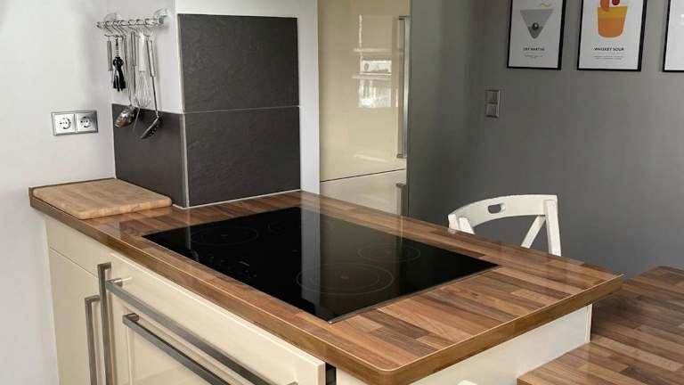 Die Ferienwohnung verfügt über einen Balkon, ein Schlafzimmer, ein Wohnzimmer und eine gut ausgestattete Küche. Ein Flachbild-TV ist ebenfalls vorhanden.