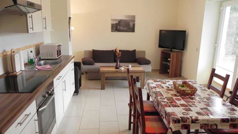 Die Villa Seestern bietet moderne Apartments mit einem Schlafzimmer. Jedes Apartment verfügt über ein gemütliches Wohnzimmer mit Flachbild-Sat-TV, eine voll ausgestattete Küchenzeile mit Kühlschrank und Backofen sowie ein Badezimmer mit Dusche. Handtücher und Bettwäsche werden bereitgestellt, um Ihren Aufenthalt so angenehm wie möglich zu gestalten. Genießen Sie auch die private Terrasse, um die frische Meeresluft zu genießen.