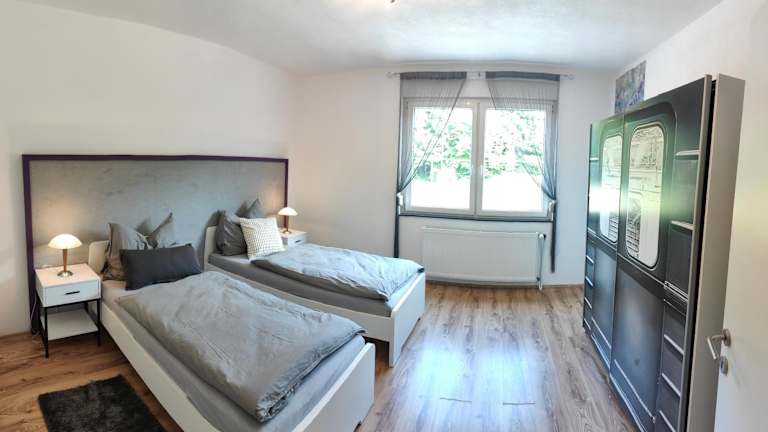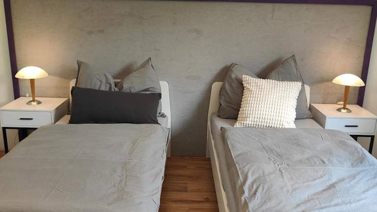 Die Ferienwohnung verfügt über 2 Schlafzimmer, ein Wohnzimmer, einen Flachbild-TV und eine gut ausgestattete Küche mit Kühlschrank und Geschirrspüler. Ein Badezimmer mit Dusche sowie Handtücher und Bettwäsche sind ebenfalls vorhanden.