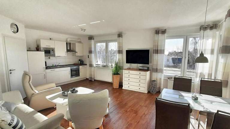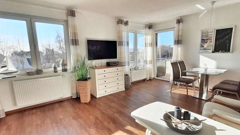 Die Ferienwohnung Wellenreiter bietet ein komfortables Apartment mit einem Schlafzimmer, einem Wohnzimmer und einem Balkon mit Blick auf die Stadt. Das Apartment verfügt über einen Flachbild-TV und kostenfreies WLAN. Die Küche ist mit einem Kühlschrank und einem Geschirrspüler ausgestattet. Im Badezimmer finden Sie eine Dusche. Handtücher und Bettwäsche werden gestellt.