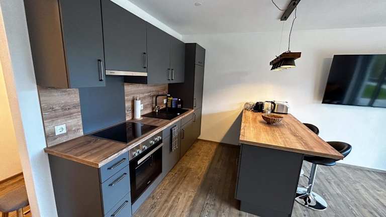 Die Ferienwohnung bietet ein Schlafzimmer, einen Flachbild-TV mit Satellitenempfang sowie eine voll ausgestattete Küche. Zu den Küchengeräten gehören ein Kühlschrank, ein Geschirrspüler, eine Waschmaschine, ein Ofen und eine Herdplatte. Handtücher und Bettwäsche werden bereitgestellt.