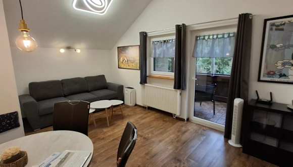 Die Ferienwohnung umfasst ein Schlafzimmer, ein Wohnzimmer, ein Badezimmer mit Badewanne sowie eine gut ausgestattete Küche mit Kühlschrank und Geschirrspüler. Zur Ausstattung gehören außerdem ein Balkon mit Bergblick, ein Flachbild-TV sowie Handtücher und Bettwäsche.