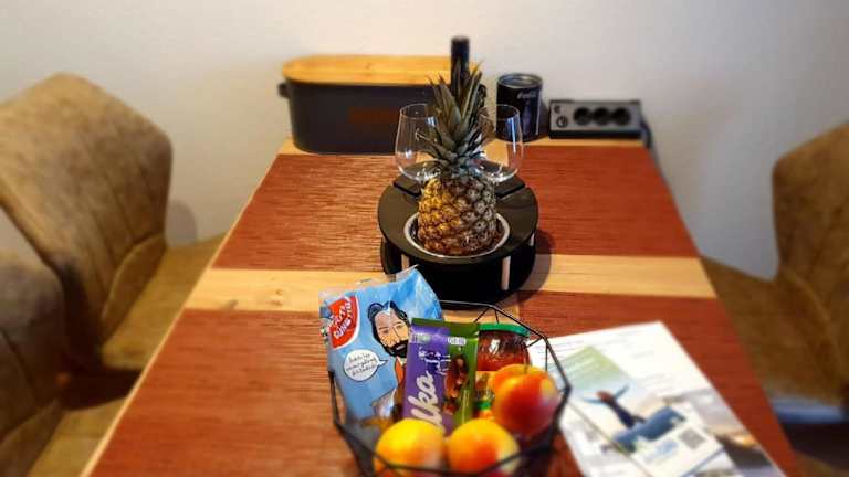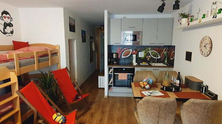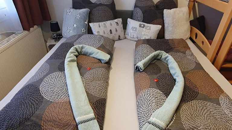 Die Ferienwohnung beinhaltet 1 Schlafzimmer, eine Küchenzeile mit Kühlschrank und Geschirrspüler sowie ein Badezimmer mit Dusche und Haartrockner. Handtücher und Bettwäsche werden zur Verfügung gestellt.