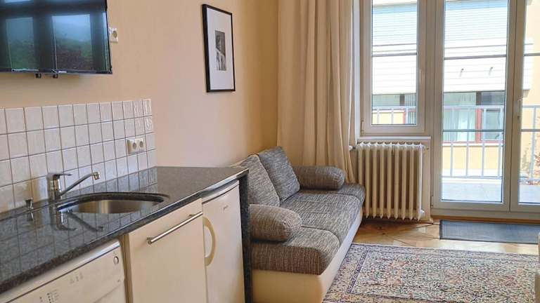 Das Apartment Wolke verfügt über ein Schlafzimmer mit Doppelbett, ein Wohnzimmer mit Schlafsofa, eine voll ausgestattete Küche mit Essbereich und Kühlschrank sowie ein Badezimmer mit Badewanne. Das Apartment ist modern eingerichtet und bietet allen Komfort, den Sie für einen angenehmen Aufenthalt benötigen. WLAN und Kabel-TV sind ebenfalls vorhanden. Auf Anfrage steht Ihnen ein Privatparkplatz zur Verfügung.