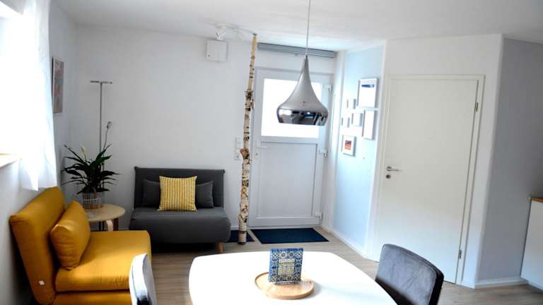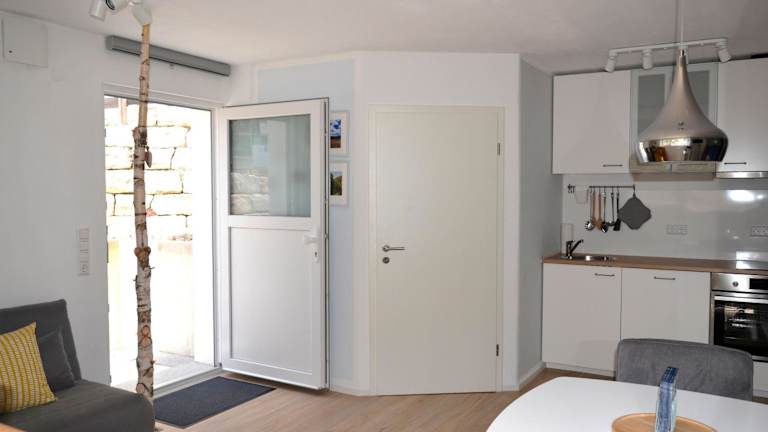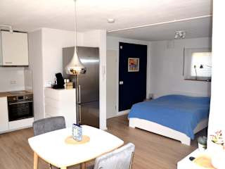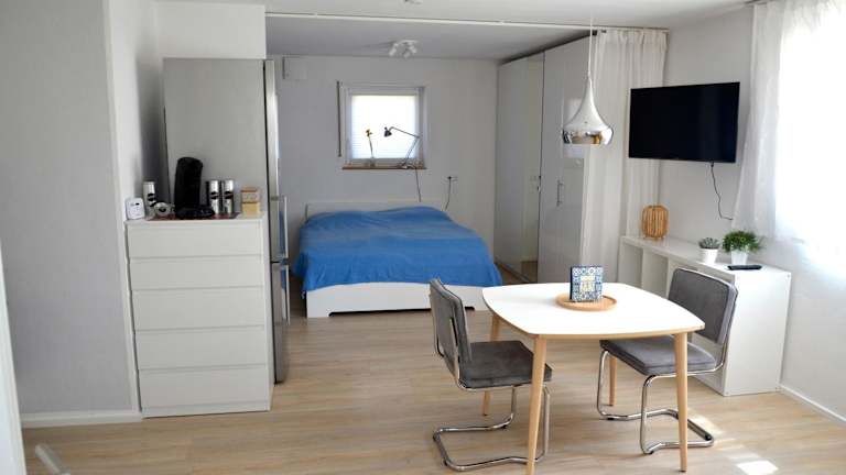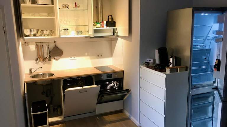 Die Ferienwohnung verfügt über ein Schlafzimmer, einen Flachbild-TV sowie eine gut ausgestattete Küche mit Kühlschrank und Geschirrspüler. Des Weiteren gibt es ein Badezimmer mit Dusche. Handtücher und Bettwäsche werden bereitgestellt.
