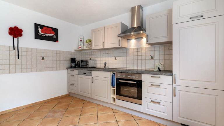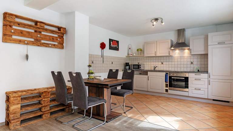Da es sich um eine Ferienwohnung zur Selbstverpflegung handelt, haben Sie die Freiheit, Ihre eigenen Mahlzeiten zuzubereiten. In der voll ausgestatteten Küchenzeile finden Sie alle notwendigen Utensilien und Geräte. Alternativ können Sie auch eines der Restaurants in der Umgebung besuchen und die regionale Küche genießen.