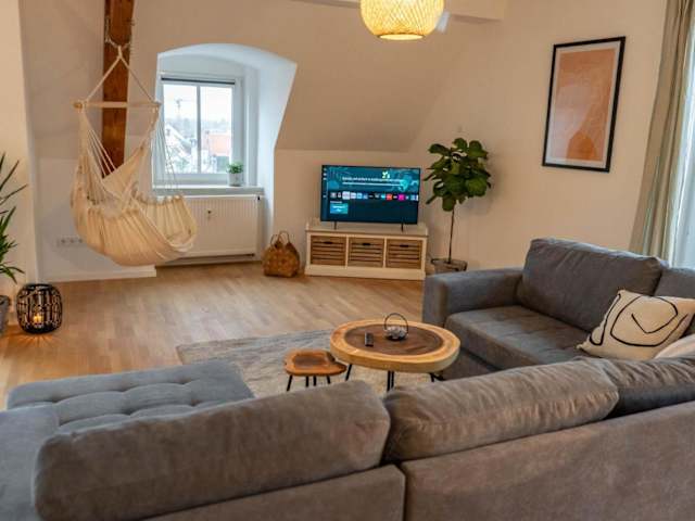 Die Ferienwohnung "Zugspitze" ist eine 95 qm große Maisonette. Sie bietet eine Sonnenterrasse, kostenloses WLAN in der gesamten Unterkunft, sowie moderne Annehmlichkeiten. Die Unterkunft ist rauchfrei und es sind keine Feiern, wie Junggesellenabschiede, erlaubt. Ein privater Check-in und Check-out ist möglich.