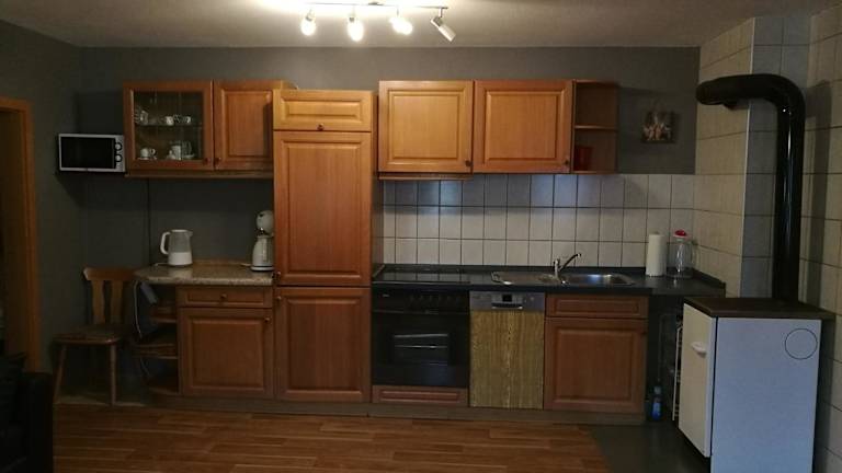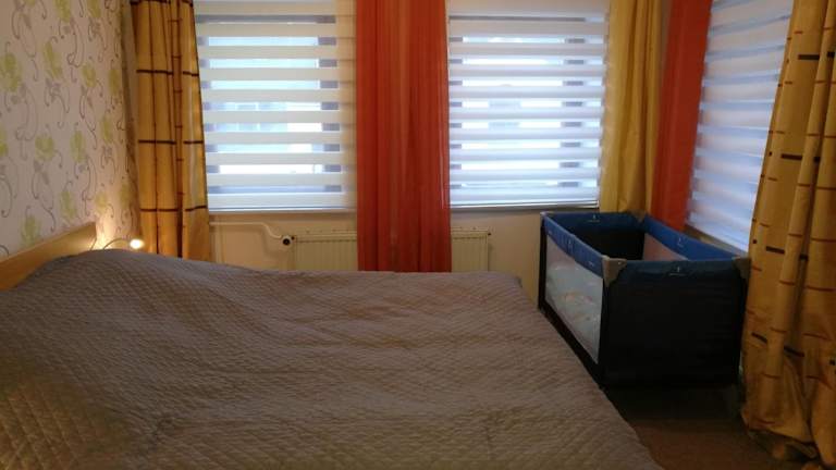 Die Ferienwohnung besteht aus einem Schlafzimmer, einem Wohnzimmer und einer voll ausgestatteten Küche mit Kühlschrank und Kaffeemaschine. Ein Badezimmer mit Dusche und kostenlosen Pflegeprodukten ist ebenfalls vorhanden. Handtücher und Bettwäsche werden bereitgestellt. Die Zimmer sind schallisoliert und umfassend ausgestattet.