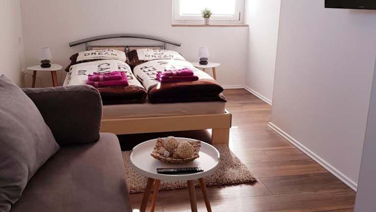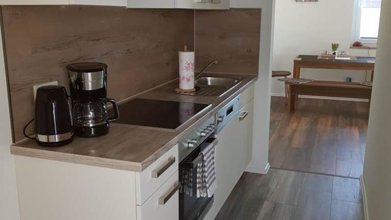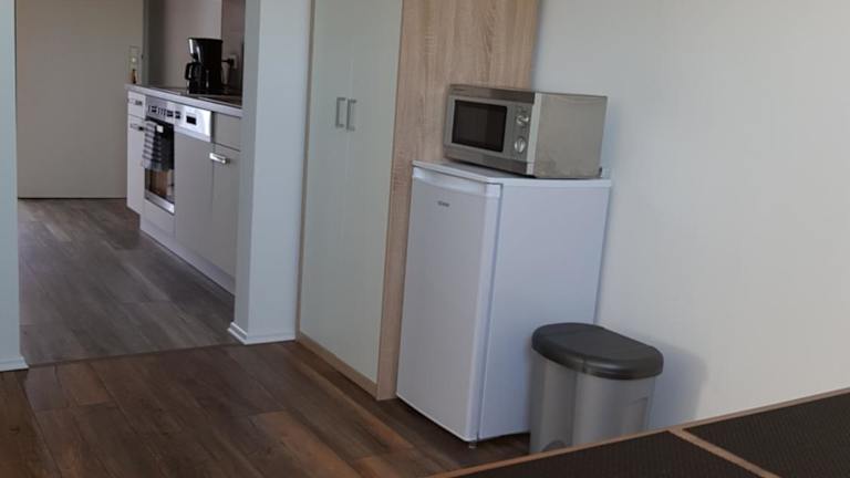 Die Wohneinheiten der Ferienwohnung sind mit Parkettböden ausgestattet und bieten eine voll ausgestattete Küche, die unter anderem einen Kühlschrank, einen Geschirrspüler, einen Ofen, eine Mikrowelle sowie eine Kaffeemaschine und einen Wasserkocher umfasst. Zum Raumangebot gehört auch ein Essbereich und eine Sitzecke mit Flachbild-TV und Satellitenkanälen. Das eigene Badezimmer ist mit einer Dusche und einem Haartrockner ausgestattet.