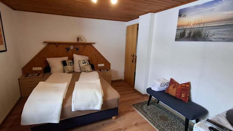 Die Ferienwohnung verfügt über 2 Schlafzimmer, ein Wohnzimmer mit Flachbild-TV und eine gut ausgestattete Küche mit Kühlschrank und Ofen. Zudem gibt es ein Badezimmer mit Dusche. Handtücher und Bettwäsche werden bereitgestellt.
