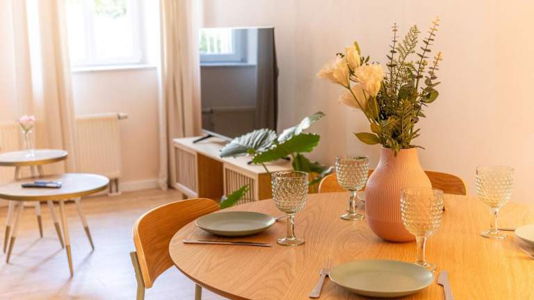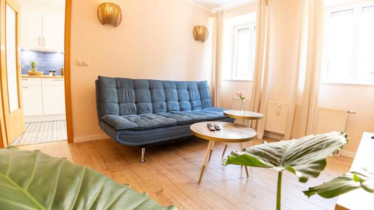 Die Ferienwohnung besteht aus einem Schlafzimmer, einem Wohnzimmer mit einem Flachbild-TV und einer gut ausgestatteten Küche, die mit einem Kühlschrank und einem Geschirrspüler ausgestattet ist. Es gibt außerdem ein Badezimmer mit Dusche. Handtücher und Bettwäsche werden bereitgestellt.