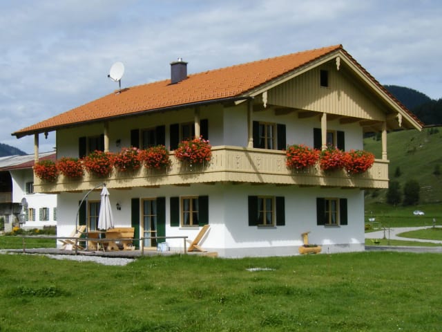 Urlaub am Bauernhof Zwei große, komfortable und helle Ferienwohnungen befinden sich in unserem 2010 fertiggestellten Nebenhaus in ruhiger, sonniger Einzellage. Ein unverbauter Blick auf eine herrliche alpine Landschaft lädt zum Entspannen ein.