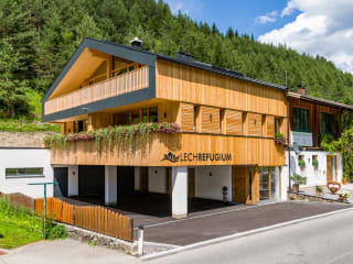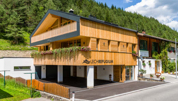 Alles ist vorbereitet - für eine besondere Auszeit im LECHREFUGIUM - fern der Stadt, aber nahe dem Himmel! DAS HAUS Modern – stil(l)voll und doch urig - traditionell schwebt das neu errichtete, natürliche Holzhaus LECHREFUGIUM auf zwei Säulen am Fuße des Arlbergs genau an jener Stelle, wo über Jahrhunderte das frische Bergheu für unseren Hof gelagert wurde. Das alte Gebälk des Heustadels erzählt aus einer Zeit von Ruhe und Geborgenheit und strahlt heimelige Wärme für einen unvergesslichen Aufenthalt aus. Wir sind mit dem Naturpark Tiroler Lech tief verwurzelt. Sie riechen den frischen Duft der Kräuter aus der hauseigenen Heilpflanzenschule und schmecken die traditionelle Kräutermedizin in unserer LECHMED Wurzelbrennerei. IHR PERSÖNLICHER WELLNESSBEREICH Unsere Vollholzbetten in den Schlafzimmern wurden zu 100% aus den Balken des alten Heustadels gefertigt. Ein exklusives Altholzbett wirkt besonders schlaffördernd, beruhigend, entzündungshemmend und schmerzlindernd im Bewegungsapparat und sorgt für ausreichend und wohltuenden Schlaf während Ihres Aufenthaltes. Privat Spa – natürlich und echt! Inklusivleistungen: Lift exklusive Führung Heilpflanzenschule/Wurzelbrennerei - Parkplatz direkt am Haus Bushaltestelle in 10m Entfernung - Skiraum mit Skischuhtrockner - gratis W-Lan im gesamten Haus - Bettwäsche, Tischwäsche, Hand- und Badetücher - Wanderwege, Fahrradwege und Langlaufloipen mit Einstieg direkt vor unserem Haus - direkte Anbindung und Ausgangsmöglichkeiten für sämtliche Sommer- und Wintersportmöglichkeiten - Lechtal Aktiv Card Gegen Gebühr: - Brötchenservice Egal, ob Sie Ihre Ferien aktiv erleben oder einfach nur entspannen und genießen möchten, das Lechrefugium bietet die ideale Ausgangsbasis für Ihre Urlaubsaktivitäten.