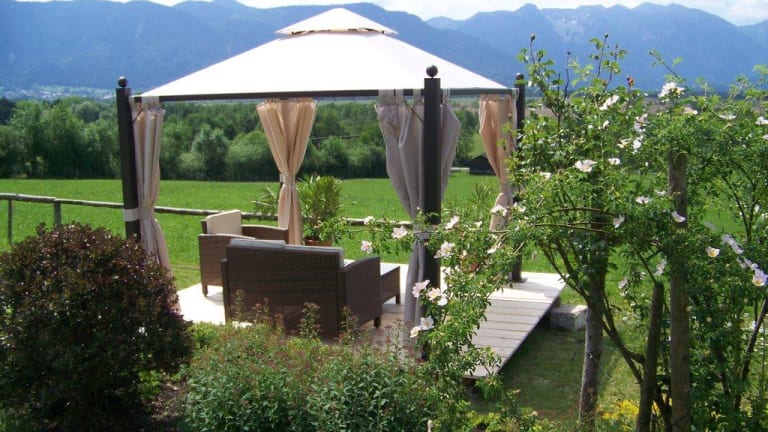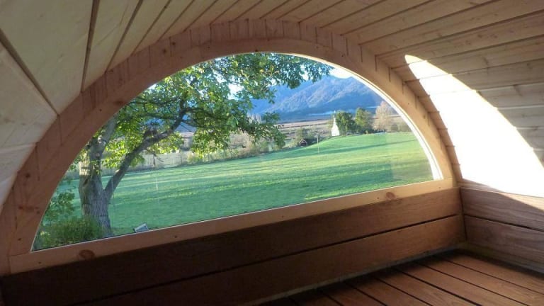 Großer Garten mit herrlichen Panoramablick über das Murnauer Moos in die Bayerischen Berge. Ein schöner, windgeschützer Freisitz mit Grill, Hängematte, Sitzsack und diverse gemütliche Gartenstühle laden Sie zum entspannen und genießen ein. Kinder lieben den großen Spielplatz mit Megatrampolin, Spieltrum mit Kletterwand, Rutsche, Schaukel, Sandkasten, Wippe, Reck und Balancierbalken. Besonders beliebt sind bei Kindern ein großes Drike (ab ca. 6 Jahre) für die Kleinen ein Trettraktor und ein Roller. Für Regentage steht den Kindern ein Indoorspielplatz zur Verfügung. Genießen Sie die wohltuende Wärme einer ganz besonderen Sauna. In der Holzfasssauna mit Panoramablick können Sie hervorragend entspannen und einen traumhaften Blick über das Murnauer Moos in die Berge genießen. Die Sauna wird mit einem Holzofen geheizt. Schauen Sie sich durch das Fenster die Flammen des lodernden Feuers an und lauschen Sie dem knackenden Holz. Das ist Entspannung für alle Sinne. Und das schönste dabei ist, Sie können das alles mit einem guten Umweltgewissen machen, da das Brennholz aus dem eigenen, nachhaltig bewirtschafteten Wald stammt.