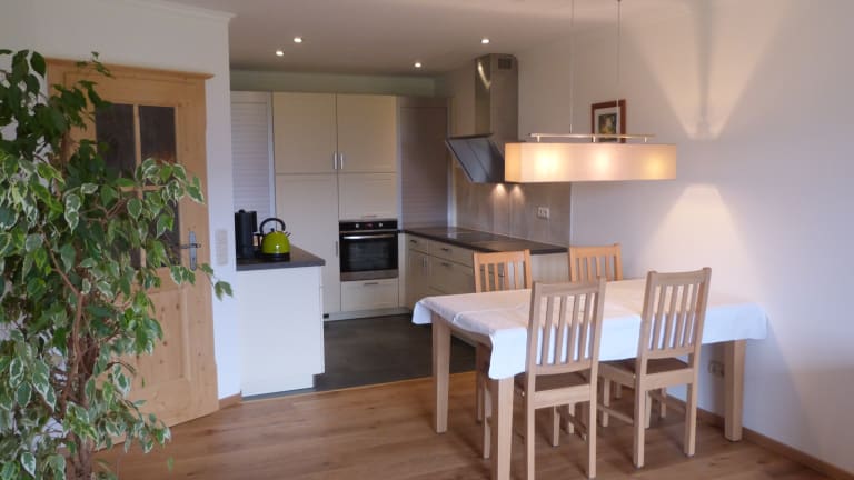 Gepflegtes Haus mit über 50-jähriger Gastgebertradition in absoluter Alleinlage. Genießen Sie die Ruhe und erleben Sie den vielleicht schönsten Panoramablick Bayerns. Großzügige Ferienwohnungen mit allem Komfort laden Sie ein, die schönsten Tage des Jahres in angenehmer Atmosphäre zu erleben. Jede Ferienwohnung ist mit Dusche/WC, einer kleinen Küche Radio/Sat-TV und Balkon ausgestattet. Im Wohnzimmer können Sie es sich auf einer gemütlichen Couch bequem machen und am großen Esstisch Platz nehmen. Je nach Größe, verfügt die Wohnung über ein oder zwei Schlafzimmer. Herzlich Willkommen auf dem Georgihof!