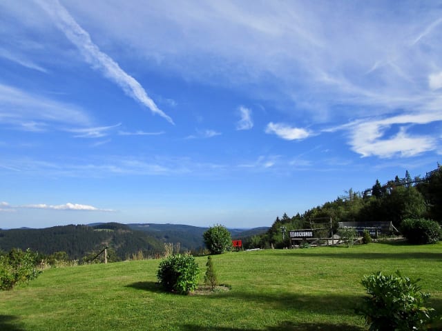 Mitten im Land der „tausend Berge“ befindet sich die Stadt Winterberg. Hier oben im Rothaargebirge – auf dem „Dach des Sauerlandes“ – liegt in einzigartiger Lage das Haus Schneekappe mit seinen Ferienwohnungen. Als letztes „Haus am Platz“ bietet sich den Gästen auf rund 740m Höhe ein unverbauter Panoramablick über die Berge des Sauerlandes bis hin nach Hessen. Direkt angrenzend an die Unterkunft finden sich der Bikepark Winterberg mit seinen Downhill-, Enduro- und Slopestyle-Strecken sowie die international bekannte Winterberger Bobbahn. Da hier auch die kleine Zufahrtsstraße endet und es somit keinen Durchgangsverkehr gibt, geschieht alles zu Fuß oder mit dem Fahrrad: fußläufig ist nach ein paar wenigen Metern der Einstieg ins Skiliftkarussell Winterberg möglich. Ebenso sind die Attraktionen des Erlebnisberges Kappe mit seiner Panoramabrücke, der Sommerrodelbahn, der Minigolfanlage und dem Kletterwald sofort erreichbar. Der Einstieg in den Rothaarsteig dauert zu Fuß keine fünf Minuten. Und wer nach Winterberg ins Zentrum möchte, erreicht dieses nach ca. 15-20 Minuten Fußmarsch.