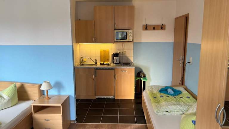 Essenslieferungen in die Unterkunft sind möglich. Es stehen voll ausgestattete Küchenzeilen in den Wohneinheiten zur Verfügung, die Annehmlichkeiten wie einen Kühlschrank, eine Mikrowelle, eine Kaffeemaschine, eine Herdplatte, einen Toaster und einen Wasserkocher umfassen.