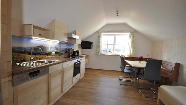 Die Ferienwohnungen verfügen über eine voll ausgestattete Küche mit modernen Annehmlichkeiten wie Kühlschrank, Geschirrspüler, Herdplatte, Ofen, Toaster, Kaffeemaschine und Wasserkocher, sodass die Gäste ihre Mahlzeiten selbst zubereiten können.