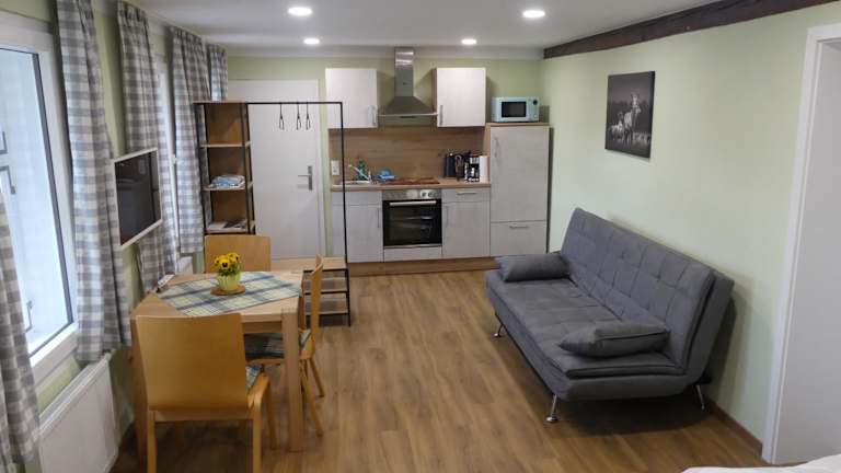 Die Ferienwohnungen sind mit einer voll ausgestatteten Küchenzeile ausgestattet, die einen Ofen, einen Toaster, eine Mikrowelle, eine Herdplatte, einen Wasserkocher und eine Kaffeemaschine umfasst. Zudem steht ein Grill zur Verfügung.
