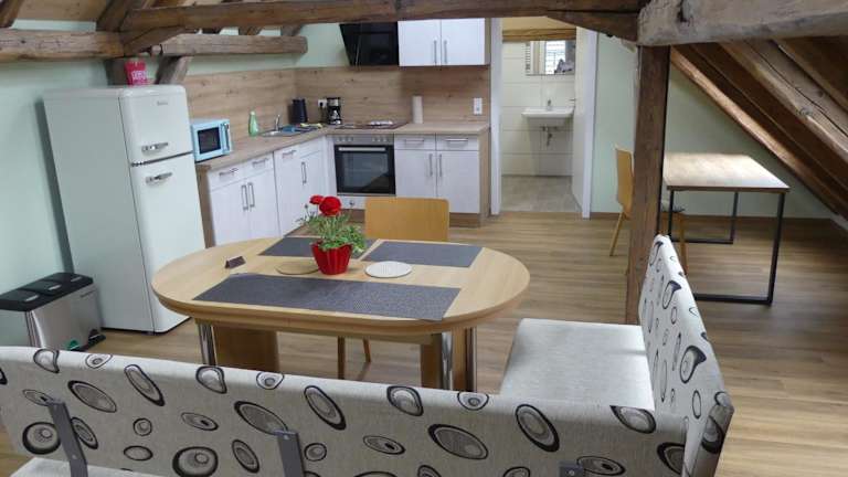Die Ferienwohnungen Kay befinden sich in der Region Bayern, im Ort Kirchaich. Die Unterkunft liegt in der Nähe von kulturellen Sehenswürdigkeiten wie der Konzert- und Kongresshalle Bamberg, die 17 km entfernt ist, und dem Bamberger Dom, der sich 18 km entfernt befindet. Der Flughafen Nürnberg ist der nächstgelegene Flughafen, etwa 64 km von der Unterkunft entfernt.