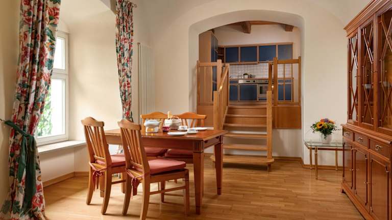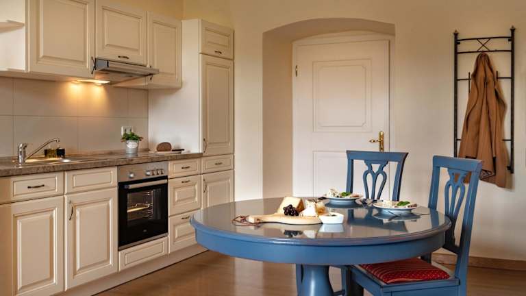 Im Klosterhof St. Salvator haben Sie die Möglichkeit, Ihre eigenen Mahlzeiten in der Küchenzeile des Apartments zuzubereiten. Die Küchenzeile ist mit einem Geschirrspüler ausgestattet, was Ihnen das Kochen und Abwaschen erleichtert. Wenn Sie keine Lust zum Kochen haben, können Sie auch die Grillmöglichkeiten nutzen oder Brot gegen Aufpreis liefern lassen.