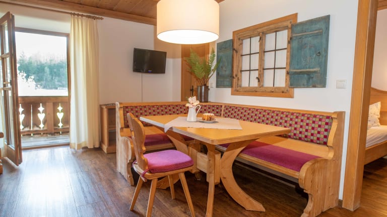 Der Knoglerhof in Ruhpolding bietet eine komfortable Unterkunft mit kostenfreiem WLAN und einer herrlichen Bergaussicht. Genießen Sie die ruhige Lage und die Nähe zur Max Aicher Arena. Das Hotel verfügt über einen Kinderspielplatz und kostenfreie Privatparkplätze. Entspannen Sie auf Ihrem eigenen Balkon oder der Terrasse und erkunden Sie die Umgebung, wie das Schloss Klessheim und den Europark, die beide in der Nähe liegen.