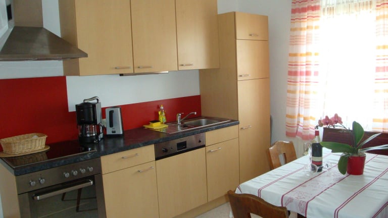 Eine komplett eingerichtete Küche macht Sie unabhängig, auf Wunsch stelle ich Ihnen gerne einen mit regionalen Köstlichkeiten gefüllten Frühstückskorb in die Wohnung, Brötchenservice