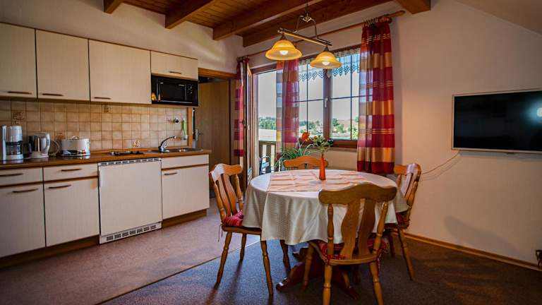 Die Ferienwohnungen mit Alpensicht bieten Selbstverpflegungsmöglichkeiten, da jede Wohnung über eine voll ausgestattete Küche verfügt. So können Sie Ihre Mahlzeiten nach Ihren eigenen Vorlieben zubereiten und genießen. Wenn Sie jedoch die lokale Küche erkunden möchten, finden Sie in der Umgebung verschiedene Restaurants und Cafés, in denen Sie regionale Spezialitäten probieren können.