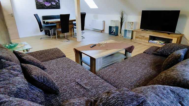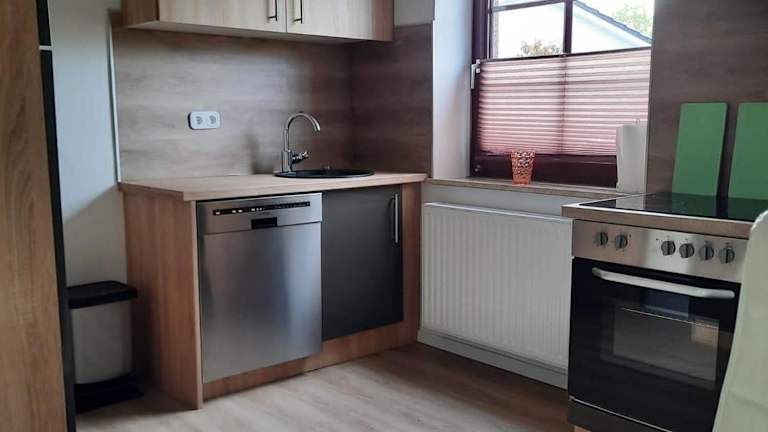 Die Ferienwohnung besteht aus drei separaten Schlafzimmern, einem Wohnzimmer sowie einer voll ausgestatteten Küche, die unter anderem mit einem Geschirrspüler und einem Ofen ausgestattet ist. Weiterhin gibt es ein Badezimmer zur Verfügung. Die Ausstattung der Unterkunft ist auf Komfort und Funktionalität ausgelegt.