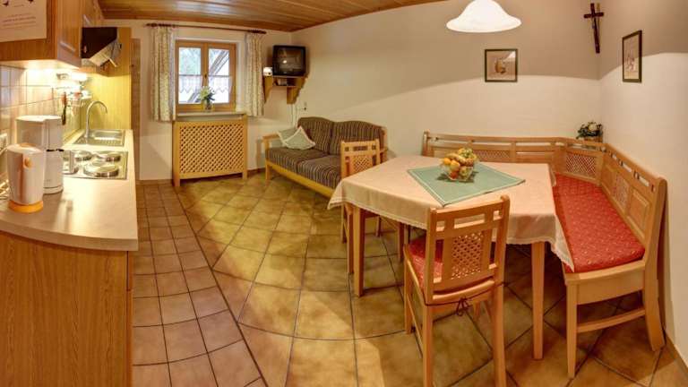 Die Wohneinheiten im Öderbauer-Hof sind komfortabel und mit Parkettböden ausgestattet. Sie verfügen über eine voll ausgestattete Küchenzeile mit einem Kühlschrank, einen Essbereich und einen Flachbild-Kabel-TV. Jedes Zimmer hat ein eigenes Bad mit Dusche und Haartrockner. Zur Ausstattung gehören auch ein Kochfeld, ein Toaster, eine Kaffeemaschine und ein Wasserkocher.