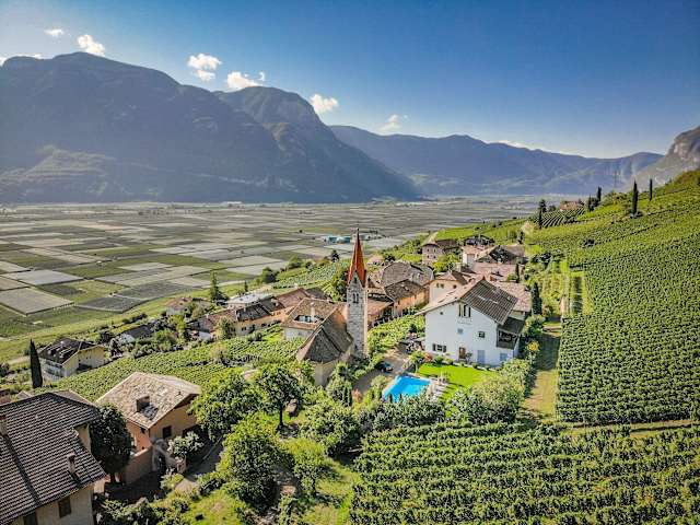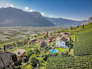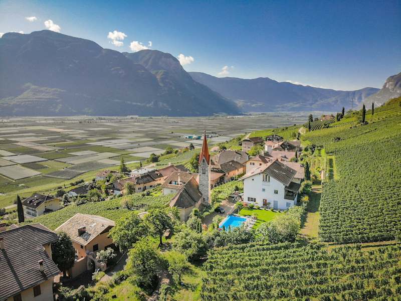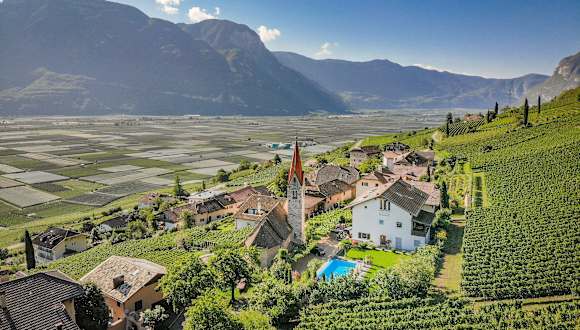 Unser Hof liegt 1,2 km vom Dorfzentrum Tramin entfernt, in besonders ruhiger Lage, inmitten unserer Weinberge, wir befinden uns auf 300 Metern über dem Meeresspiegel und haben hier bereits ein mediterranes Klima mit über 300 Sonnentagen im Jahr. Wir befinden uns in der Region des Kalterer See, ca. 20 Kilometer südlich von Bozen und 30 Kilometer nördlich von Trient. In der näheren Umgebung können Ausflüge in die Bergwelt der südlichen Dolomiten, auf die Mendel und in den Naturpark Trudner Horn unternommen werden.