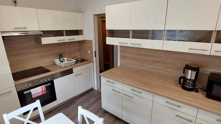 Das Apartment in der Ferienwohnung Weißes Ross bietet allen Komfort, den Sie für einen angenehmen Aufenthalt benötigen. Es verfügt über eine Terrasse, auf der Sie die frische Luft und die schöne Umgebung genießen können. Im Inneren finden Sie einen gemütlichen Sitzbereich, einen Flachbild-Sat-TV und eine voll ausgestattete Küche mit allen notwendigen Geräten wie einem Kühlschrank, einem Backofen, einer Mikrowelle, einem Kochfeld, einem Toaster, einer Kaffeemaschine und einem Wasserkocher. Das private Badezimmer ist mit einer Dusche und einem Haartrockner ausgestattet.