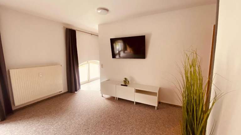 Die Ferienwohnung umfasst ein Schlafzimmer und ein Wohnzimmer mit einem Flachbild-TV. Außerdem ist eine voll ausgestattete Küche vorhanden.