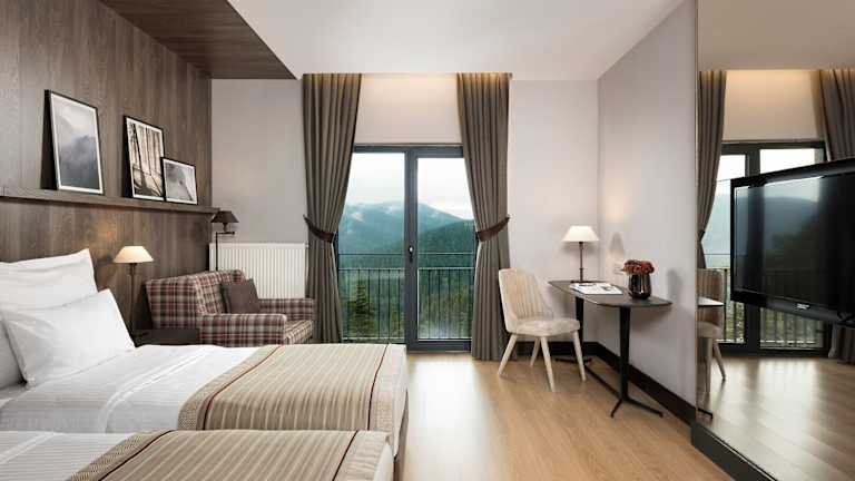 Die Zimmer im Ilgaz Mountain Resort Hotel sind gemütlich und geschmackvoll eingerichtet und verfügen über Holzmöbel. Sie bieten einen komfortablen Sitzbereich, einen LCD-TV und kostenloses WLAN. Die Badezimmer sind mit einer Dusche und einem Haartrockner ausgestattet und bieten kostenlose Kosmetikartikel.